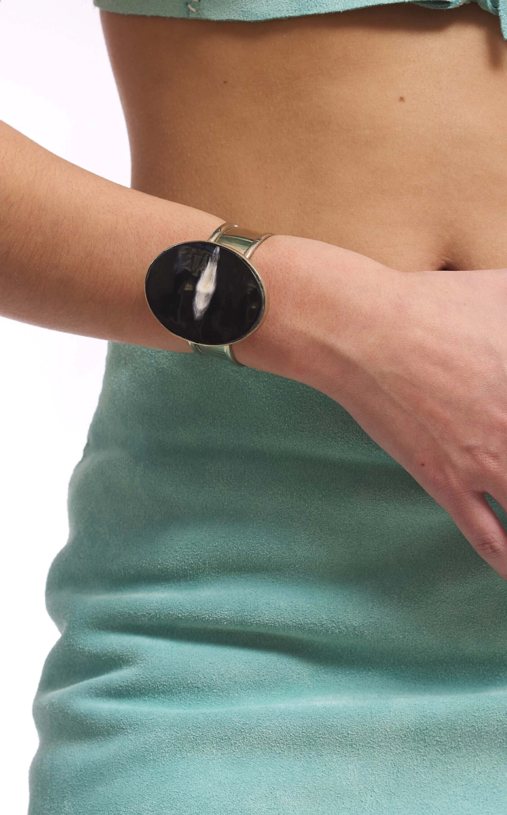 Cada pieza es única, tal como las Astas que llevan engarzadas, los bordes del brazalete se diseñan en guarda con relieve para mejorar su grosor y peso, así como su comodidad.