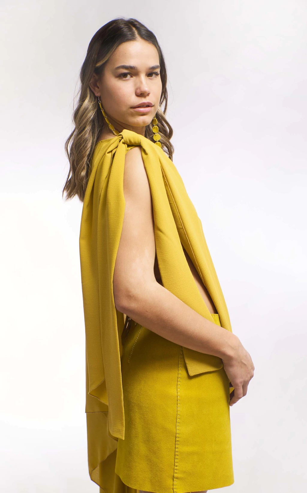 Esta realizada en Creppe, y puede usarse de diversas formas, incluye un scarf XL del mismo material.